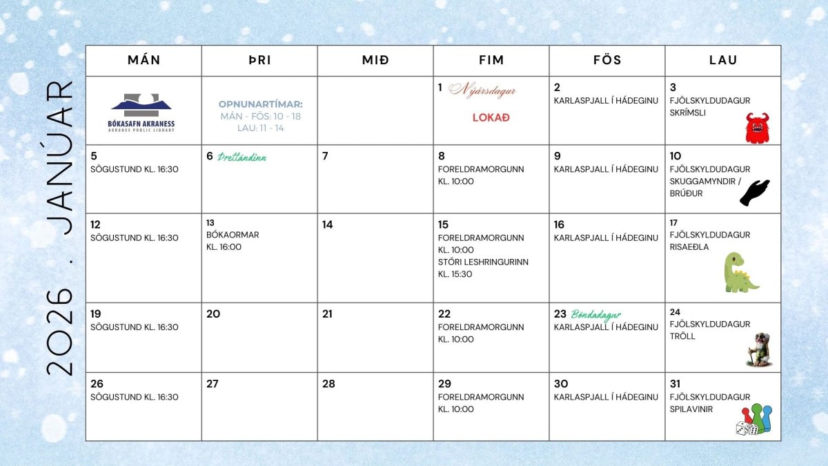 Dagskráin okkar í janúar.